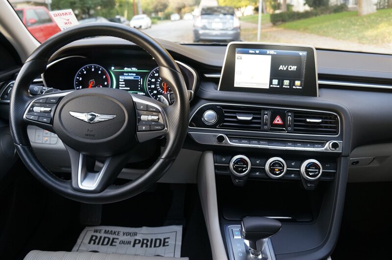 Clean, Clean, Clean this is the condition of this Loaded, One Owner, Carfax Certified Vehicle with a great service history a very well-kept well-maintained Vehicle, always garaged and a California Vehicle. this G70 is loaded with options like, Elite Package, Includes full LED headlights, power folding auto-dimming outside mirrors, rain-sensing wipers, dark chrome grille and window trim, approach and puddle lights w/Genesis logo, wide power tilt-slide sunroof with one touch open and close, front and rear parking warning sensors, integrated memory system, power tilt-and-telescopic steering wheel, heated and ventilated front seats, leather seating surfaces, front passenger seat walk-in, alloy pedals, door and console aluminum trim, and integrated navigation system with 8-in touchscreen Lexicon 15-speaker audio system with Quantum Logic Surround and Clari-Fi Music Restoration. Connected in-car apps: Google POIs, Google search, SiriusXM Movie Listing, SiriusXM Stocks, SiriusXM Travel Link, SiriusXM Weather, Smartphone integration: Android Auto, Apple CarPlay, Pre-collision warning system: audible warning, pedestrian detection, vibrating seat belt, vibrating steering wheel, visual warning, Smart device app function: engine start, horn/light operation, lock operation, maintenance status, vehicle location, Solar-tinted glass: front, rear and so much more....3rd party inspections are welcome....please make an appointment for your visit and test drive....YOU WILL LOVE THE CONDITION OF THIS VEHICLE